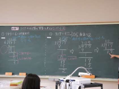 計算の仕方を発表したり、商に0が入る計算の仕方を考えたりしました。