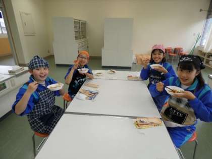 6年生の野菜炒めもいよいよ終盤となり、味見の時間です。
