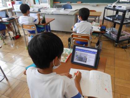 5月25日(水)4年生国語「アップとルーズで伝えよう」 公開日 2022/05/25 更新日 2022/05/25 できごと 見たものを誰かに説明することは結構むずかしいものですが、ものを近くで観察したり、対象物から離れて全体を見たりすることで、見えてくる情報も異なります。今回は群馬県庁舎を例として近くで撮影した写真と遠くからの写真それぞれから得られる情報を使って、説明して伝えたいことを考えました。