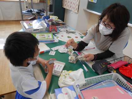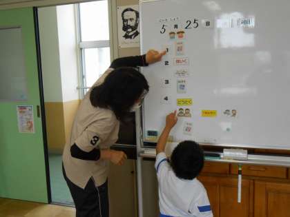 5月25日(水) ひびき組 数字とひらがな 公開日 2022/05/25 更新日 2022/05/25 できごと 時間割りのマグネットで、数字の勉強、かるたを使ってひらがなを復習してみました。 上毛かるたの絵柄に興味津々。
