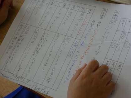 5月26日(木)こまを楽しむ 公開日 2022/05/26 更新日 2022/05/26 できごと 3年生の国語は、説明文の授業です。 こまにはいろいろな回し方があることが「中」の部分に書かれています。 今日のめあてである、問いに対する答えは?の課題に、みんな頭を絞って答えを探していました。 プリントに自分の考えの道筋を書き込んでいる子もいました。 あきらめずに考えている姿がとてもかっこいいな、と思いました。
