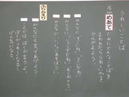 友達のいいところを褒める言葉、応援する言葉、一緒になにかをしようと誘う言葉など、たくさんの言葉が発表されました。