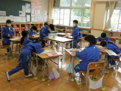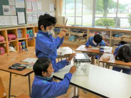 2年生の教室では、みんなが丸くなって何かを観察していました。