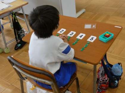 6月17日(金)ひびき組 算数 公開日 2022/06/17 更新日 2022/06/17 できごと ひびき組の算数では、いろいろなものを使って、数を数えました。 数カードやおはじきなどを使って、数を覚えていきます。