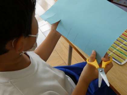 ひびき組では、敬老の日に祖父母の方に贈る感謝のカードを作成中です。