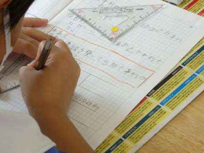 ひびき組の算数は、平行な2本の直線の性質を使って、台形や平行四辺形を書く授業でした。