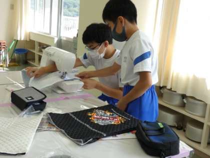 9月13日(火)ナップザックづくり 公開日 2022/09/13 更新日 2022/09/13 できごと 6年生の家庭科は、ミシンを使って縫う段階に入りました。 布が折り重ならないように、まっすぐ縫えるように、と友達どうしでアドバイスしたり、この縫い方でちゃんとしたナップザックになるのかをじっくり考えたりしていました。 大切に使えるナップザックができあがりそうです!