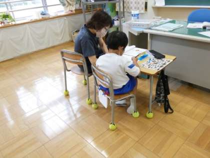 ひびき組の算数は、ひし形の特徴を使って図形をかく授業でした。