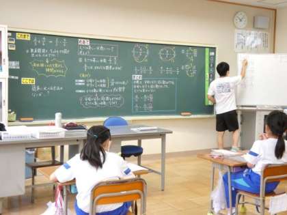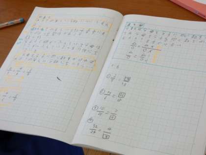 9月15日(木)大きさの等しい分数 公開日 2022/09/15 更新日 2022/09/15 できごと 5年生の算数は、大きさの等しい分数のつくりかたについて考えました。 分子と分母に同じ数をかけたり割ったりすれば、大きさは変わらない、ということを理解し、練習問題に取り組みました。 このあとは、この考え方を使って通分の学習につながっていきます。