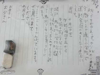 9月21日(水)招待状の書き方 公開日 2022/09/21 更新日 2022/09/21 できごと 3年生の国語の時間は、招待状や手紙の書き方の授業です。 季節の言葉を入れて、敬体で文章を整え、礼儀正しく美しい招待状ができました。 運動会へのご招待です。 ご家族の方はもらってとてもうれしいのではないかと思います。 心を込めて書けましたね。