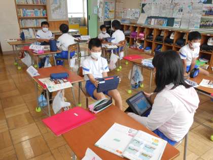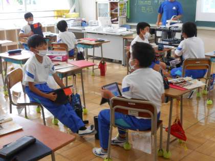 9月22日(木)4年生 英語 いくつ持ってる? 公開日 2022/09/22 更新日 2022/09/22 できごと 今日の英語の授業では、「〜を持ってる?」と尋ねたり答えたりする表現に加えて、「いくつ持ってる?」と尋ねたり答えたりする表現を勉強しました。持っていると想定した品物とその数をタブレット内に入力しておき、友達とペアになって尋ねたり答えたりする活動を行いました。