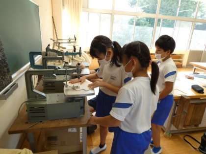5年生の図工は、糸のこぎりを使って、パズルを制作し始めました。