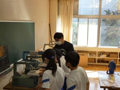 機械の音と、のこぎりとで、ドキドキしながらも、友達と協力して作業を進めていました。