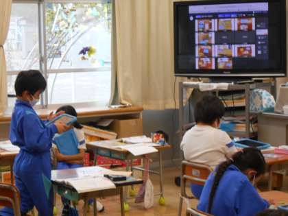 できたら、タブレットで撮影して先生に送ります。仲間の作品はどうかな?