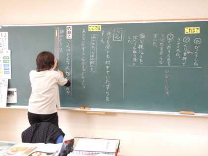 ひびき組の国語は、「ごん」という人物(きつね)像をまとめる授業でした。