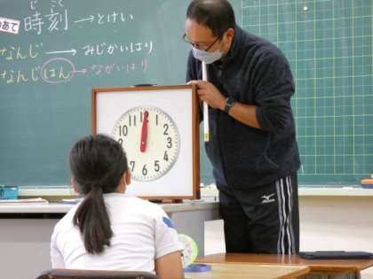 10月13日(木)なんじ なんじはん 公開日 2022/10/13 更新日 2022/10/13 できごと 1年生の算数は、時刻の授業です。 1年生では、「何時」「何時半」だけ勉強し、細かい時刻や時間は2年生で勉強します。 時計を見て、正しく言えるように、正しく合わせられるように覚えました。 日常生活でも使うことで、覚えられるといいなと思います。