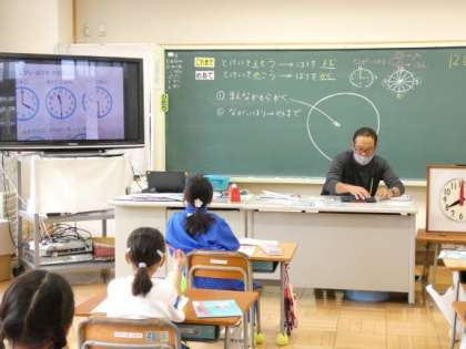 10月14日(金)なんじ なんじはん 公開日 2022/10/14 更新日 2022/10/14 できごと 1年生の算数は、時刻の授業です。 今日は、時計の針を正しくかいて、時刻が表せるようにします。 正しくかくときのポイントを教えてもらい、自信をもってかけるようになりました。