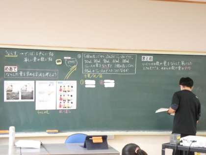 平均の求め方が2つ出され、それぞれのやり方で問題を解いたり、「はかせ」で求められるのは、どういうやり方かな、と考えたりしました。
