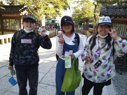 どのグループも協力しあって無事に到着しました。 手に手にお土産を持ち、たくさん歩きました。