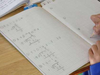 商の見当をつけて、たくさんのわり算の計算問題に取り組んだり、数の大小の勉強をしたりしました。