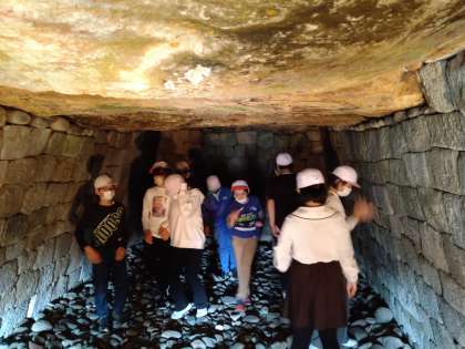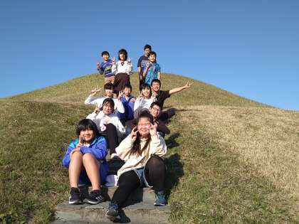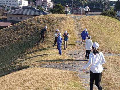 観音山古墳見学 公開日 2022/11/11 更新日 2022/11/11 できごと お弁当を残さずいただいて、午後は観音山古墳です。 現地ガイドの方がくわしく説明してくださいました。観音山古墳の埴輪の粘土は藤岡産、とのことです。 社会科の学びの他に、「本物を見て考える」ことが大切だということを教えていただきました。 施設の方々には大変お世話になりました。 また、保護者の皆さまには、朝早くから美味しいお弁当を作っていただき、ありがとうございました。