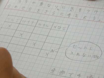 11月14日(月)組み合わせ方 公開日 2022/11/14 更新日 2022/11/14 できごと 6年生の算数は、組み合わせ方をさらに深く考える授業です。 授業改善のための校内授業参観も行われました。 子供たちは、これまでに学習した方法の中から、どのやり方が問題に適しているのかを考えながら自分で答えを見つけていました。 その後の話合いで、友達のよいやり方を見つけたり、その方法で新しい問題を解いたりもしました。