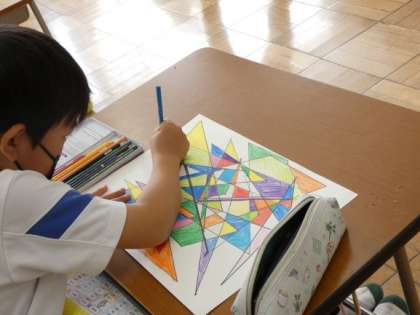 細かいところまでしっかり色をつけ、みんなの作品が仕上がり、サインを入れて完成しました。