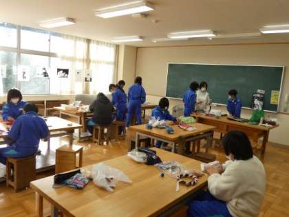 中クラブでは、クリスマスリースの仕上げをしていました。