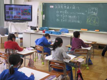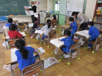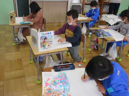 12月13日(火) 1年生 図工「読書感想画」 公開日 2022/12/13 更新日 2022/12/13 できごと 読書感想画に取りかかりました。好きな本の一場面を想像し、まずは、大きな紙にアイデアを下書きします。大きな紙に書くことに慣れていないせいか、やや戸惑いがちでした。