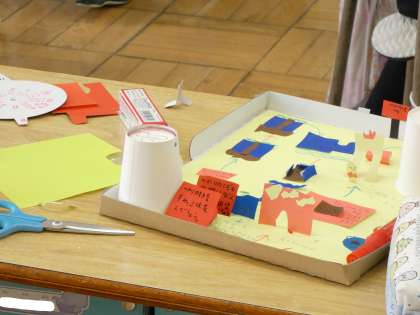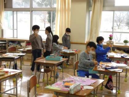 12月13日(火)わくわくおはなしゲーム 公開日 2022/12/14 更新日 2022/12/14 できごと 2年生の図工は、「わくわくおはなしゲーム」の制作です。 楽しいお話になるように、言葉を入れたり飾りを作ったりしています。 出来上がったら、みんなで遊びたいですね。