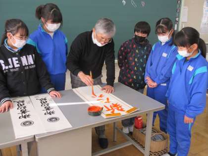 12月13日(火) 書き初め練習5年生 公開日 2022/12/14 更新日 2022/12/14 できごと 今年度も先生にご指導をしていただきます。 「ゆっくりと、大きく書くことが大切です。」 と教えていただきました。 みんな真剣な面持ちで書いていました。