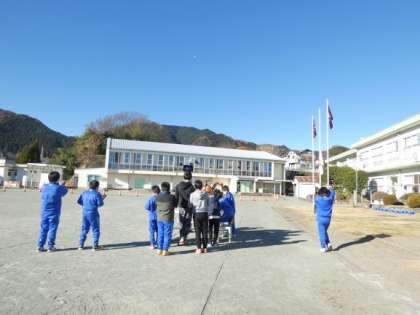 1時間おきに月の動きを記録し、最後に先生が動画を見せてくれました。山の上にあった月が、体育館の上辺りまで沈んでくるのがよく分かりました。