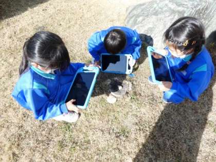 「冬のもの、ってなんだろう?」と言いながらも、これまでの季節にはなかったものを見つけようと、いろいろな所をよく観察していました。