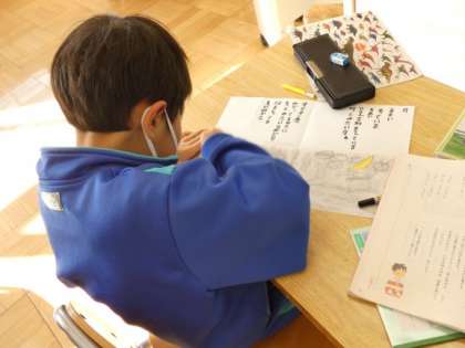 1月18日(水)熟語の意味 公開日 2023/01/18 更新日 2023/01/18 できごと ひびき組の国語は、熟語の意味の授業です。 前半は、自分で作った詩を完成させました。対比のようになっていて、挿絵を入れ、とてもすてきに仕上がりました。 後半は、初めて「熟語」という言葉を習いました。 訓をてがかりにして、クイズのように熟語の意味を考えたりしました。 自主学習でもやってきたい、とやる気まんまんで、とてもうれしく思いました。