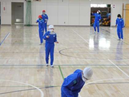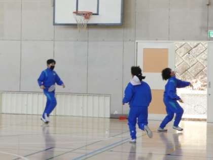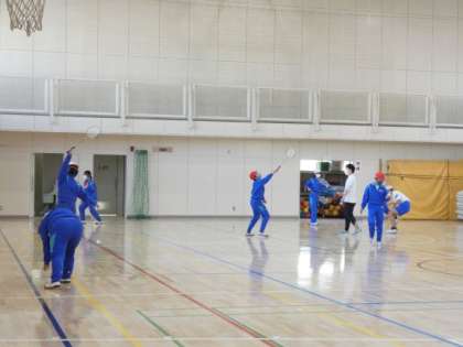 シャトルを高くまっすぐあげてそれを受け止めたり、床に落とさないようにして連続して打ったりと、基礎的な練習を頑張っていました。