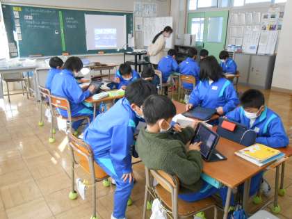 今日の社会は桐生市を例に挙げ、桐生市が伝統や文化を残していくためにどのような町づくりを工夫しているのか学習しました。伝統的なのこぎり屋根の工場跡をどのように活用しているのかなどを調べるために、タブレットを通して桐生の町を移動しました。新鮮な驚きや発見があった学習でした。