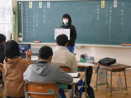 2月1日(水)6年生 国語 今、私は、ぼくは 公開日 2023/02/01 更新日 2023/02/01 できごと 6年生の国語は、卒業を間近に控えたこの時期に思うことをクラスのみんなの前で発表しました。なぜそう思うのかなど、要点をはっきりとさせ、自作の資料を活用しながら分かりやすく伝えるための学習です。みんなそれぞれに個性的な考えや思いがこもったよい発表でした。大変頑張りました。