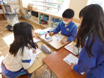 2月6日(月)ものの重さ 公開日 2023/02/06 更新日 2023/02/06 できごと 3年生の理科は、ものの重さの授業です。 算数で学んだ重さの勉強を生かして、重さを予想しながら、いろいろなものを測りました。 最後に気が付いたことを発表しました。「大きさは同じでも、重さが違う。」という意見に賛成した子が多数。 なぜ?理由は?などの疑問や新しい発見が、楽しく学ぶ力を育てているのだな、と感じました。