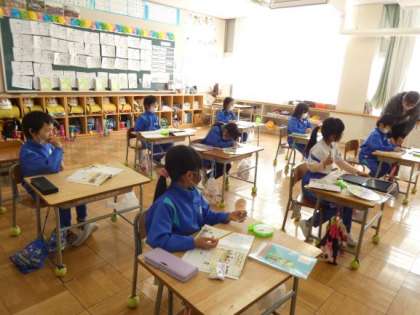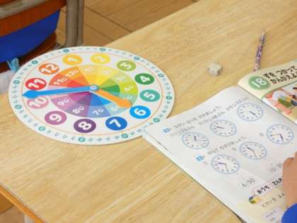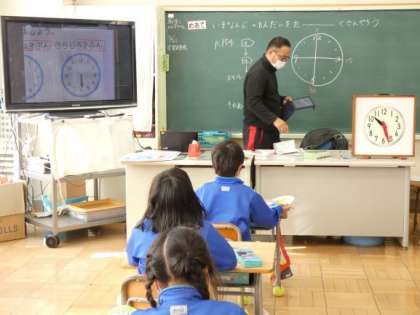 2月6日(月)とけい 公開日 2023/02/06 更新日 2023/02/06 できごと 1年生の算数は、とけいの授業です。 短針と長針の使い方や動きを学び、体をつかって時刻を表現して覚えていました。 ○時○○分という細かい時刻の読み方を勉強しました。 生活の中で使い、経験をとおして時刻を理解していってほしいと思います。