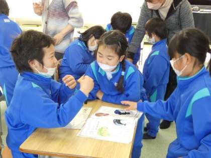 3月6日(月)様子を思い浮かべて 公開日 2023/03/06 更新日 2023/03/06 できごと 1年生の音楽は、歌詞から様子を思い浮かべて歌う授業です。 四季の様子を歌った歌です。それぞれの季節を表すキーワードをどんなふうに身体表現して歌うかをグループごとに話し合っていました。 動きの速さや大きさ、動きなど、友達の考えを聞きながら、話し合っていました。考えを言うときに、きちんと理由も述べて話している様子を見て、1年間の成長を感じました。