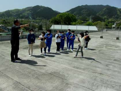 4月13日(木) 3年社会 公開日 2023/04/13 更新日 2023/04/13 できごと 屋上に出て、学校の東西南北に、どのような施設や建物があるのかを調べ、教室に戻って気付いたことや発見したことを紹介し合いました。