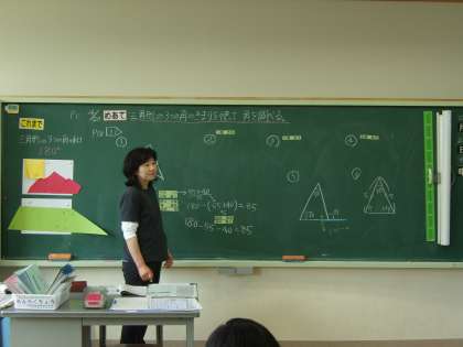 これまでに「三角形の内角の和が180度」であることを学んできました。それを使って、今日は、めあて「三角形の3つの角のきまりを使って、角を調べよう」で、三角形のいろいろな問題について角を調べることができました。