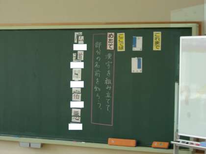 4月21日(金) 4年授業参観 公開日 2023/04/21 更新日 2023/04/21 できごと これまでに「へん」や「つくり」を勉強してきました。ここでは、めあて「漢字の部分を組み立てて、部分の名前を知ろう」で、分解された漢字を組み合わせながら「かんむり」「にょう」「たれ」などについて学習しました。
