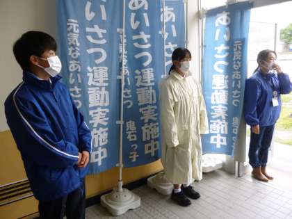 5月8日(月) あいさつ運動 公開日 2023/05/08 更新日 2023/05/08 できごと ゴールデンウイーク明けの今日は、あいにくの天気でしたが、民生児童委員の皆さんと、鬼石中学校の3年生が来校し、6年生の児童と共に、登校してくる子どもたちを迎えてくれました。ゴールデンウイーク後でしたが、一人も休むことなく、みんな元気に登校することができました。
