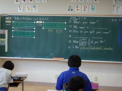 今日は、名前や好きなものことお伝えようで、「My name is 〜」「I like 〜」を使って友達と会話を楽しっました。