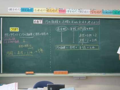 5月10日(水) 6年算数 公開日 2023/05/10 更新日 2023/05/10 できごと 今日から新しい単元「円の面積」に入りました。今日のめあては「円の面積を正確に求める方法を考えよう」で、子どもたちは、これまで習ったことを思い出しながら、学習プリントを使って考えていました。