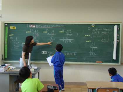 5月11日(木) 5年算数 公開日 2023/05/11 更新日 2023/05/11 できごと 今日は、めあて「整数×小数をどのように計算する?」のめあてを立て、問題を解いたり、どのように解いたかを説明したりしながら、「整数の計算に直してするとよい」とまとめることができました。