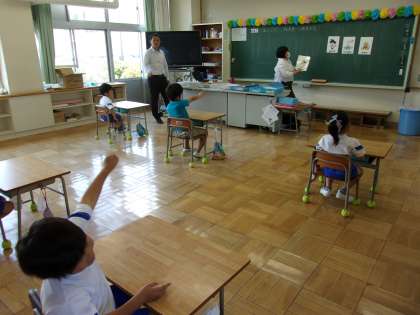 5月11日(木) 1年外国語活動 公開日 2023/05/11 更新日 2023/05/11 できごと 「英語で気持ちを伝えよう」で、「good」「hungry」「tired」などの言葉を教わりながら、元気な声で発音をしていまいた。どの子も外国語活動を楽しんでいました。