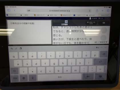 5月18日(木) 6年国語 公開日 2023/05/18 更新日 2023/05/18 できごと 「心の時間と時計の時間」の学習も終盤に差し掛かってきました。今日は、めあて「主張と事例をふまえて、自分の考えよう」で、これまでの学習をもとに、自分考えを一人一人まとめていました。