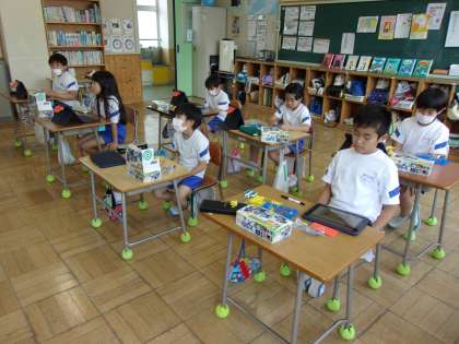 5月18日(木) 4年理科 公開日 2023/05/18 更新日 2023/05/18 できごと 今日は、めあて「電池を使ってモーターでプロペラを回して、気付いたことを話し合おう」を立て、教材を組み立てプロペラを回し気付いたことを話し合っていました。